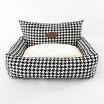 Houndstooth Fabric Cat Sofa Bed with Removable Washable Litter